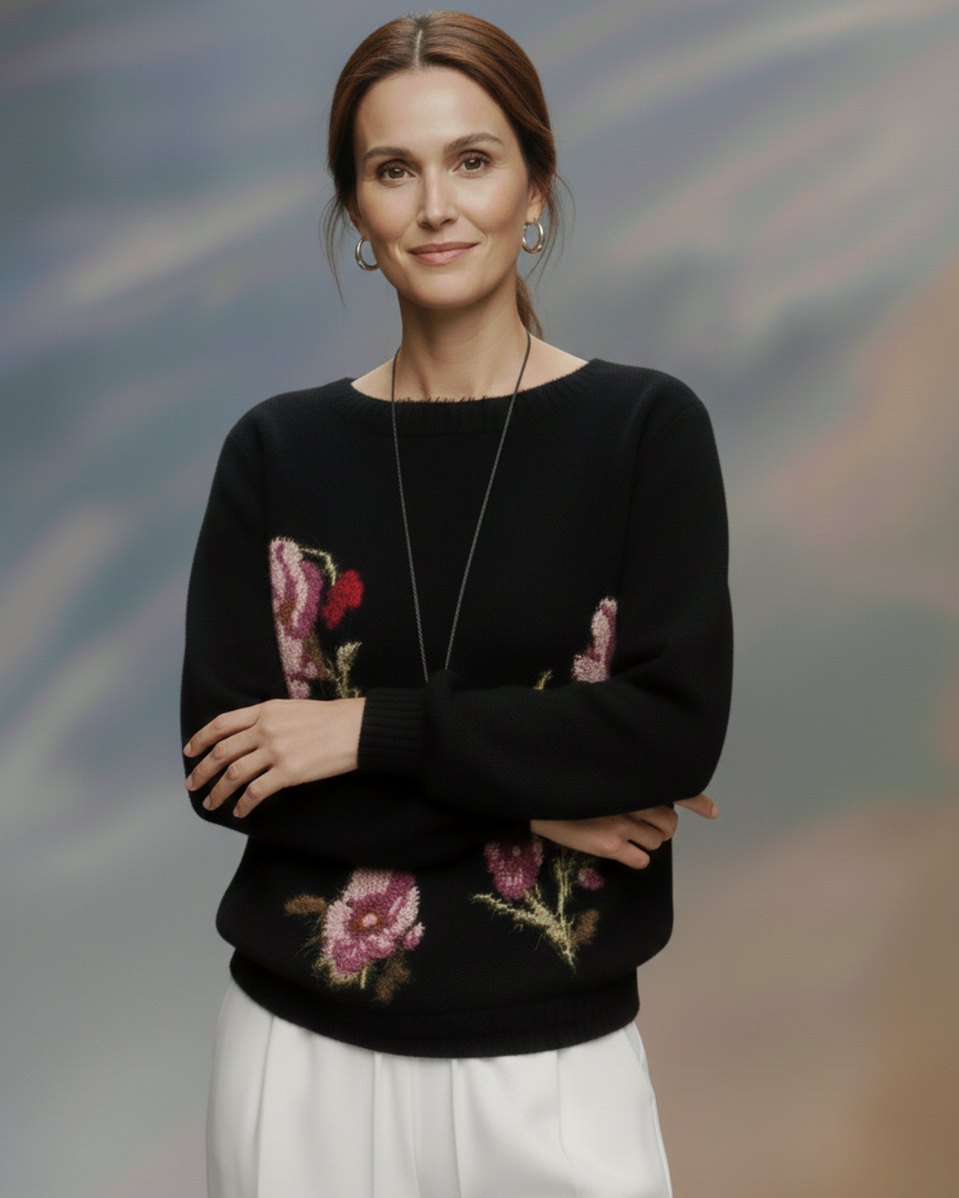 It’s the kind of knit you throw on with tailored trousers, denim, or over a skirt — and it instantly pulls everything together.