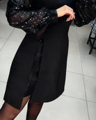 The statement puff sleeves add a subtle shimmer that naturally draws attention upward and frames the silhouette beautifully, while the clean, structured shape creates a flattering line without feeling restrictive. Designed to stay comfortable throughout the evening, it allows you to move with ease from arrival to last drink. The above-the-knee length keeps the look balanced and refined, making it suitable for multiple occasions, while the timeless design ensures it remains a reliable choice season after season.